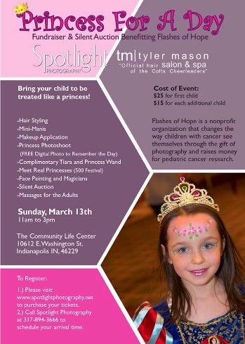 Well on top of being able to support the Women's Fund raiser with my artistic canvas this weekend I have more exciting new. Tonight rehearsal dinner, tomorrow I'm photographing for Jordan Hogg and Bruce Moschell.  Sunday is the fund raiser for Flashes of Hope.  Princess for a Day is a mother daughter outing where happy memories are made while raising money for Flashes of Hope.  Feel free to come last minute.